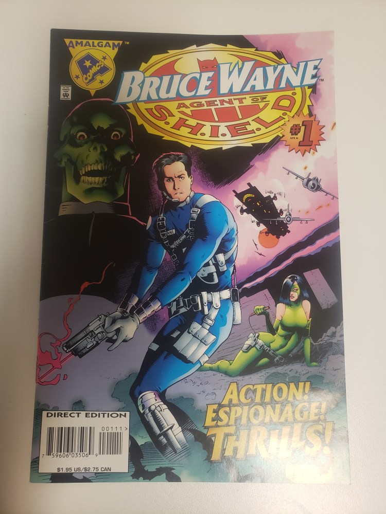 First, you should know that not every character is a blend of multiple characters. Bruce Wayne isn’t a blend of anyone .He’s mostly himself if he became a spy in this infused world and not the bat. His parent’s like in most iterations are murdered, but this time by the Green Skull( L.L.), the leader of Hydra. So Bruce has done whatever necessary to become the director of S.H.I.E.L.D to get revenge. Nick Furry is just original (pre-MCU) Nick Furry, no change really.